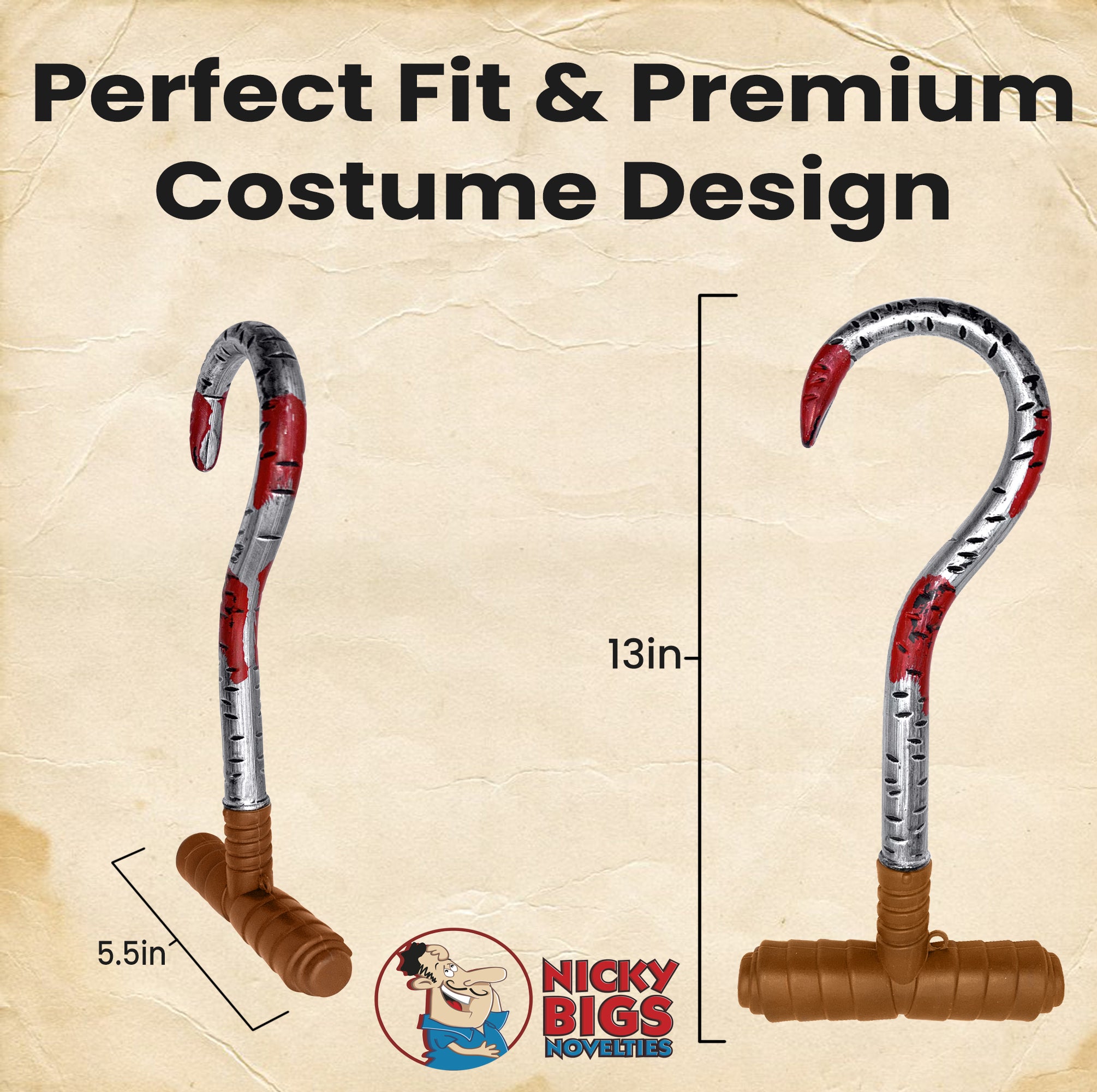Add bone-chilling realism to your Halloween look with the Nicky Bigs Novelties Bloody Hay Hook Prop, the ultimate horror accessory. This 13-inch costume prop is crafted from lightweight, hollow plastic, making it incredibly easy to carry, pose with, or display. Though it's safe and lightweight, it’s designed to mimic the appearance of a gruesome, blood-stained metal hay hook, complete with a 5.5-inch wide brown grip handle for comfortable use.