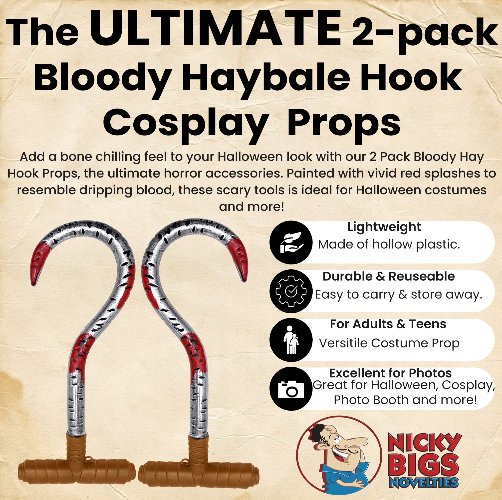 2-Pack Plastic Fake Hay Bale Hook Meat Hooks Fake Weapons Halloween Horror Prop