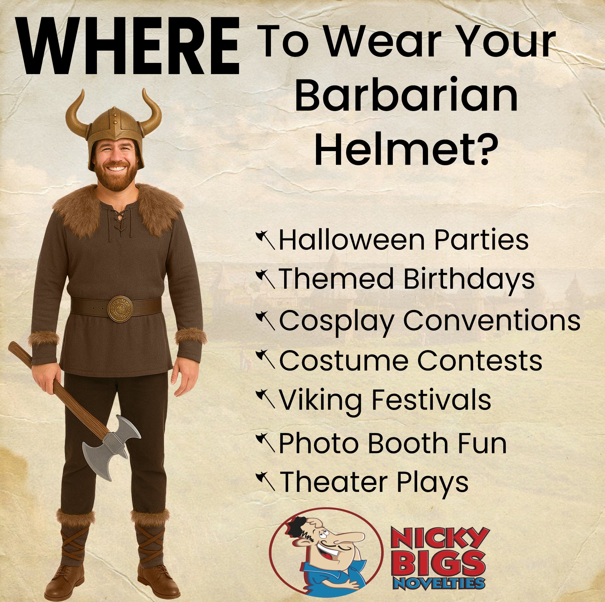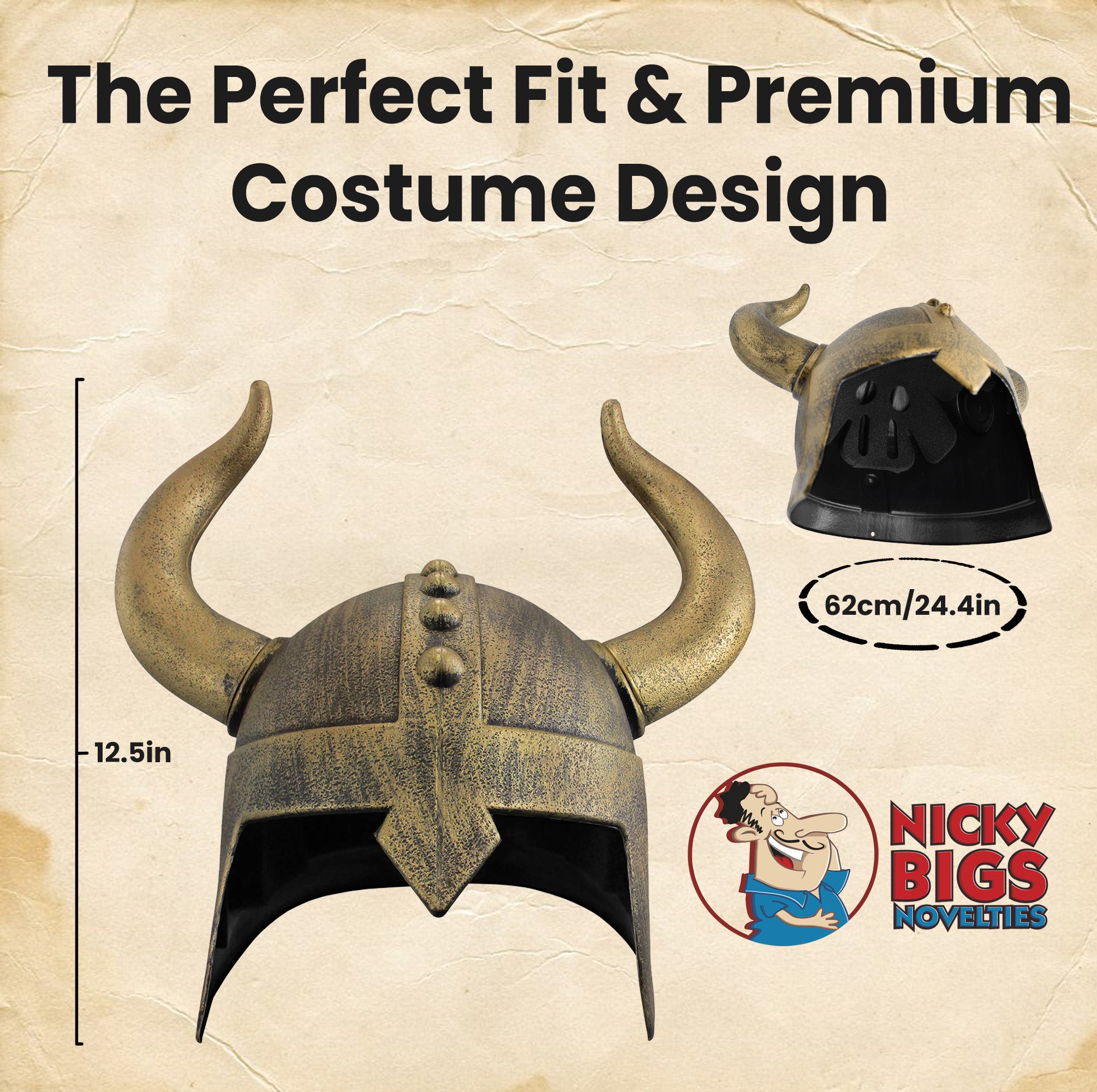 Unleash your inner warrior with the Nicky Bigs Novelties Adult Viking Helmet with Horns, a must-have accessory for those who live for epic moments, whether on stage or in costume. Crafted from lightweight plastic with a realistic distressed bronze finish, this Viking-inspired helmet delivers a bold statement without compromising on comfort. The curved horns attach easily and firmly, creating an authentic barbarian aesthetic that’s perfect for Halloween, cosplay conventions, medieval reenactments, or even spirited tailgating events.