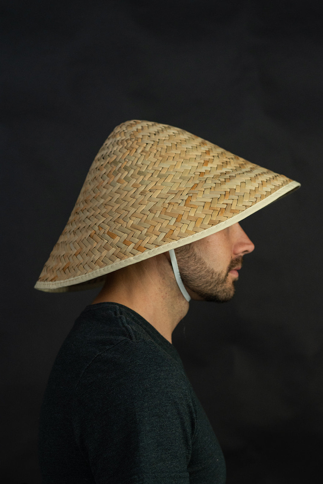 Adult Oriental Bamboo Straw Hat - Asian Japanese Chinese Sun Hats - Woven Conical Rice Farmer Costume Accessory