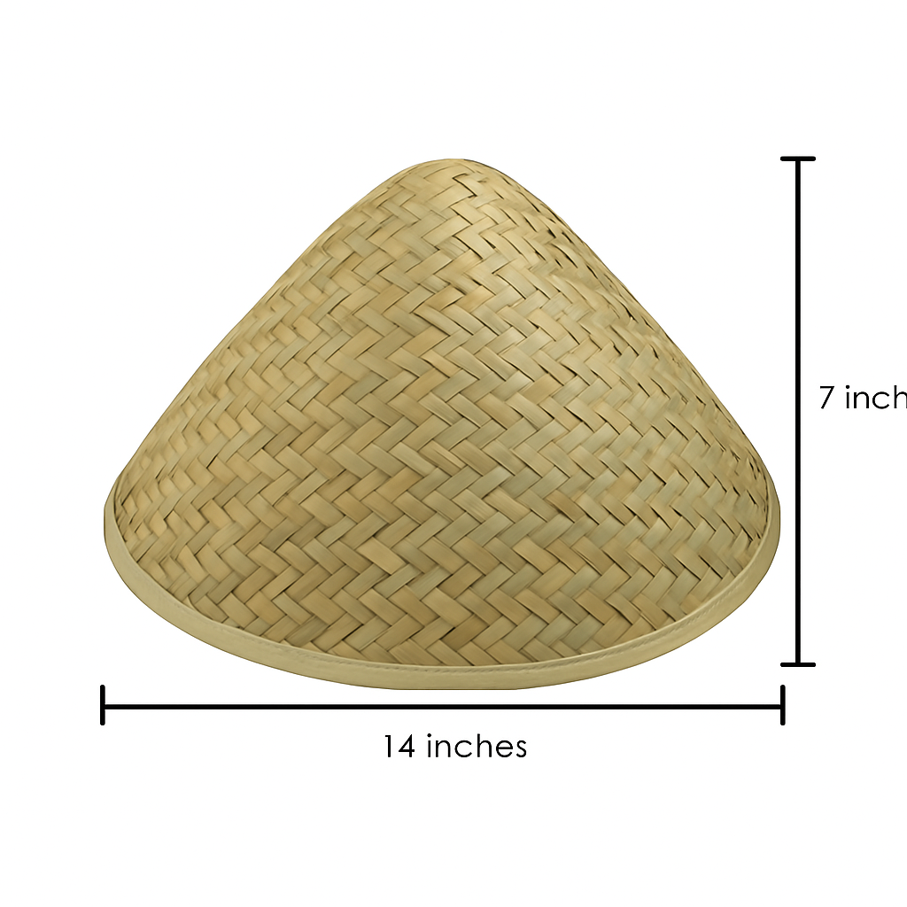- Traditional Cone Design: Crafted from natural bamboo, this lightweight woven conical hat is inspired by Asian rice farmer styles. At 14 inches wide and 7 inches tall, it offers ample sun coverage while maintaining airflow, making it perfect for outdoor tasks and costume events.