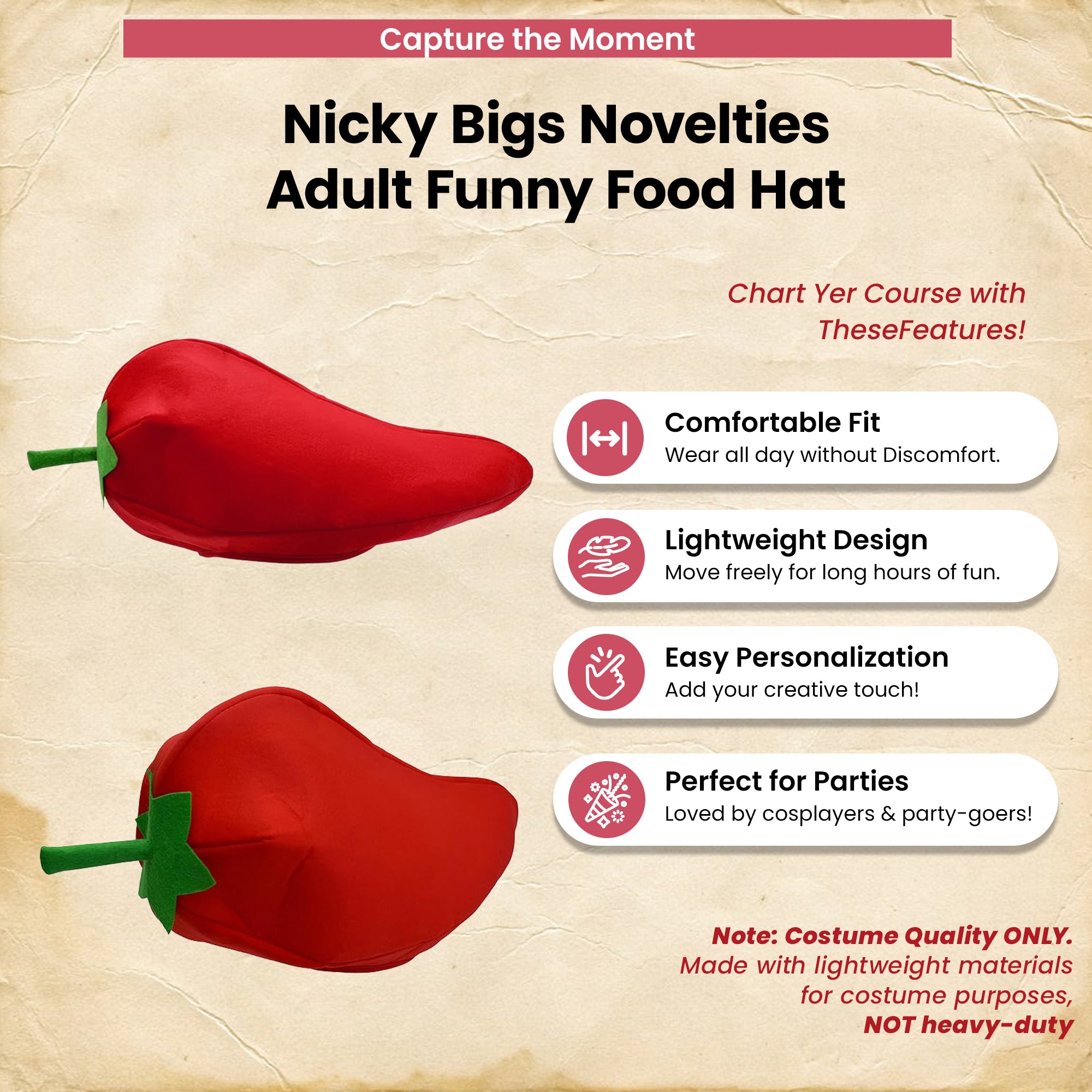 - Adult Oversized Red Chili Pepper Hat. Perfect for Men, Women, and Teens.