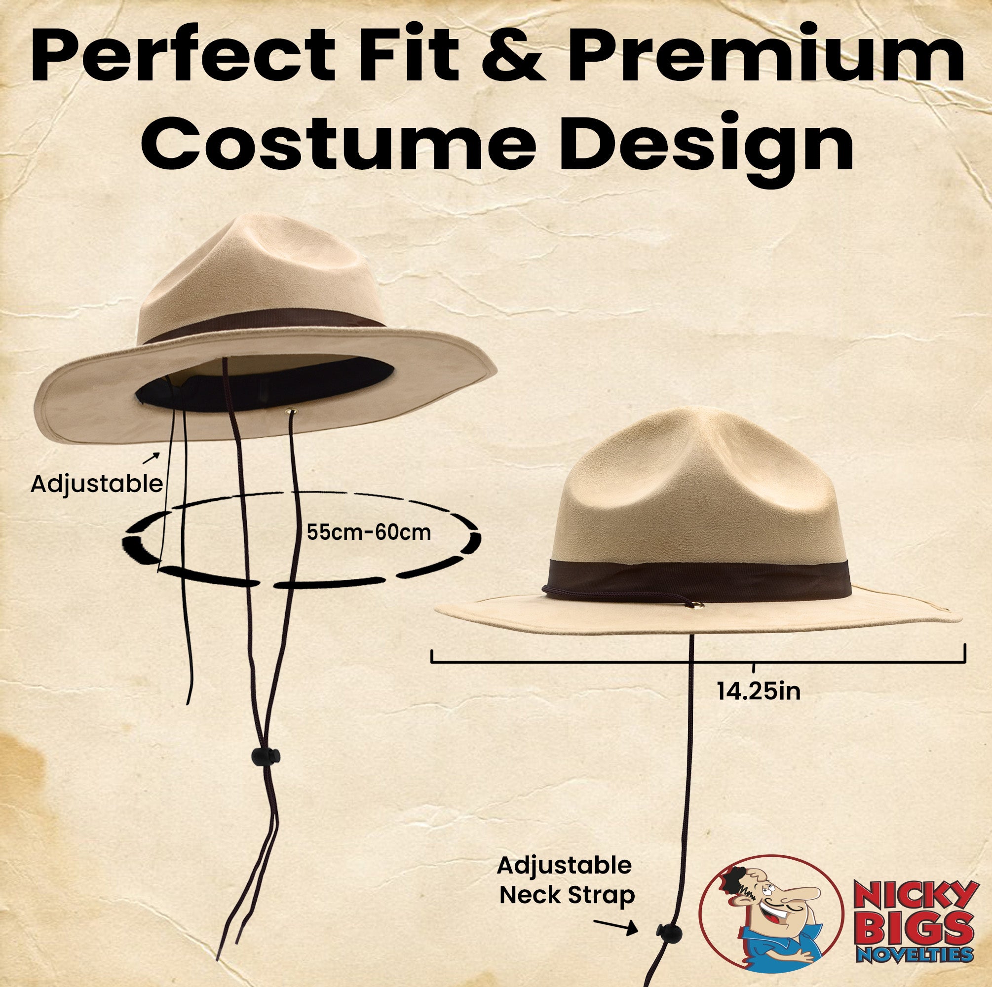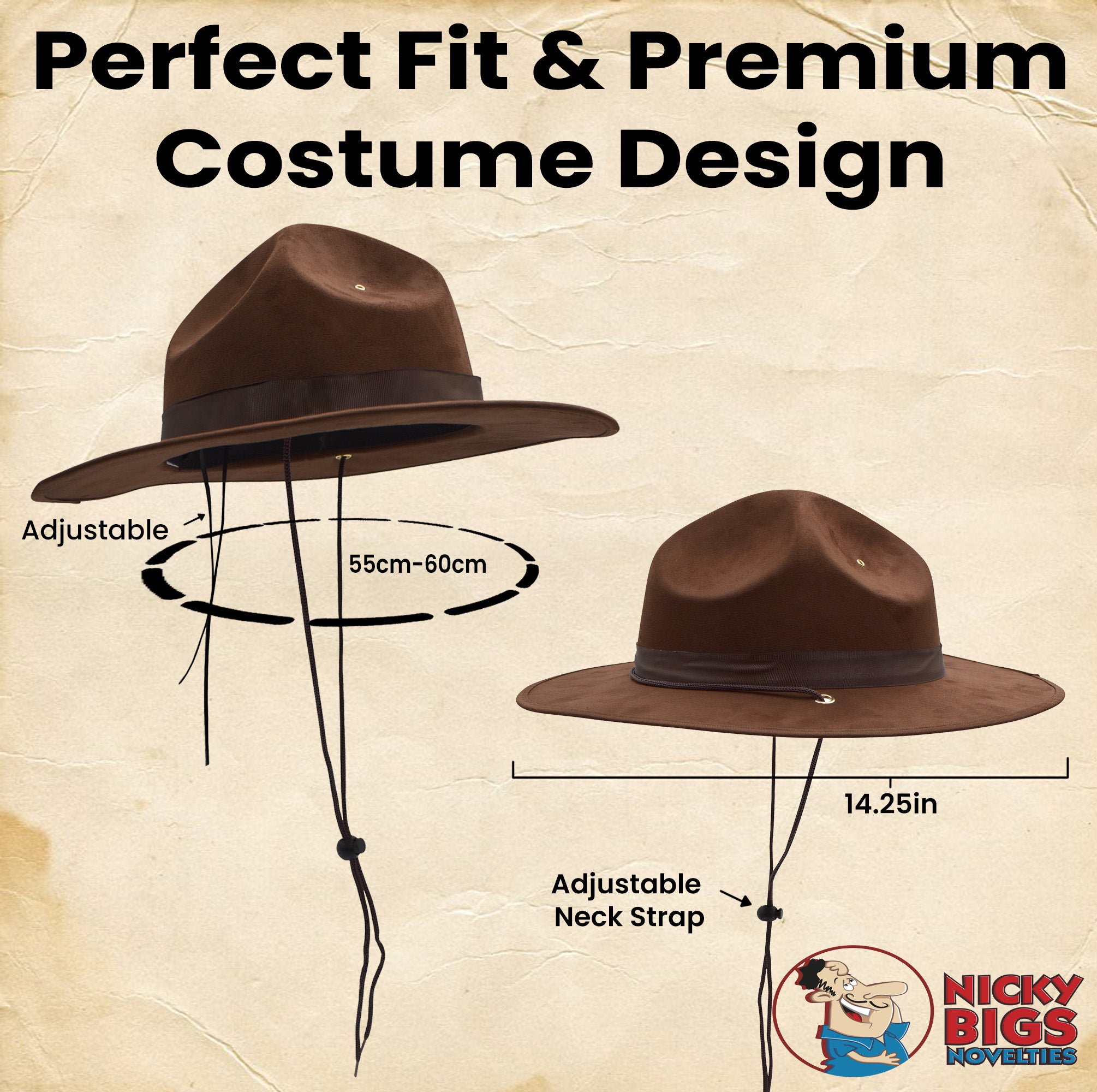 - One Size Fits Most Adults Measuring approximately 59 cm (22.2 inches) in circumference, this hat provides a comfortable fit for most men and women. With a classic design and universal sizing, it's an essential accessory for those dressing as a park ranger, drill sergeant, sheriff, or Canadian Mountie.