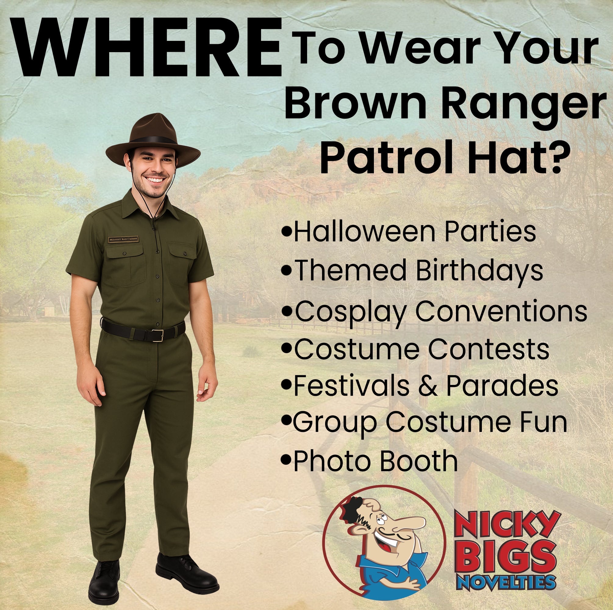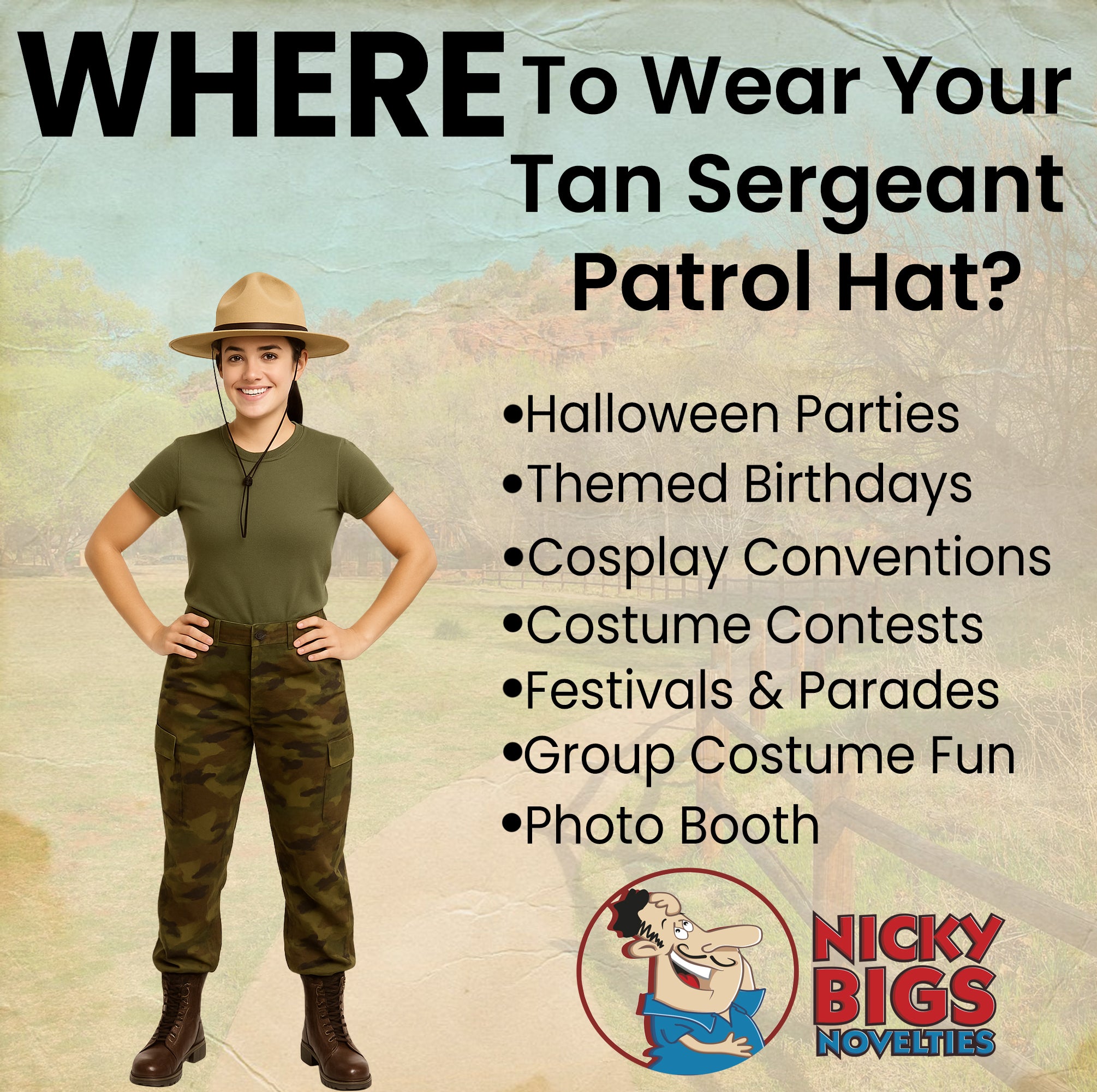 - Versatile Costume & Cosplay Accessory Whether you're dressing up as a state trooper, or a historical military figure, this campaign hat is a must-have addition to your costume collection. Perfect for Halloween, cosplay conventions, theatrical performances, and historical reenactments. Perfect for Halloween, Cosplay, Theater, WW2 World War 2 Reenactment, and more! One size fits most. Spot clean only. For ages 14 and older.