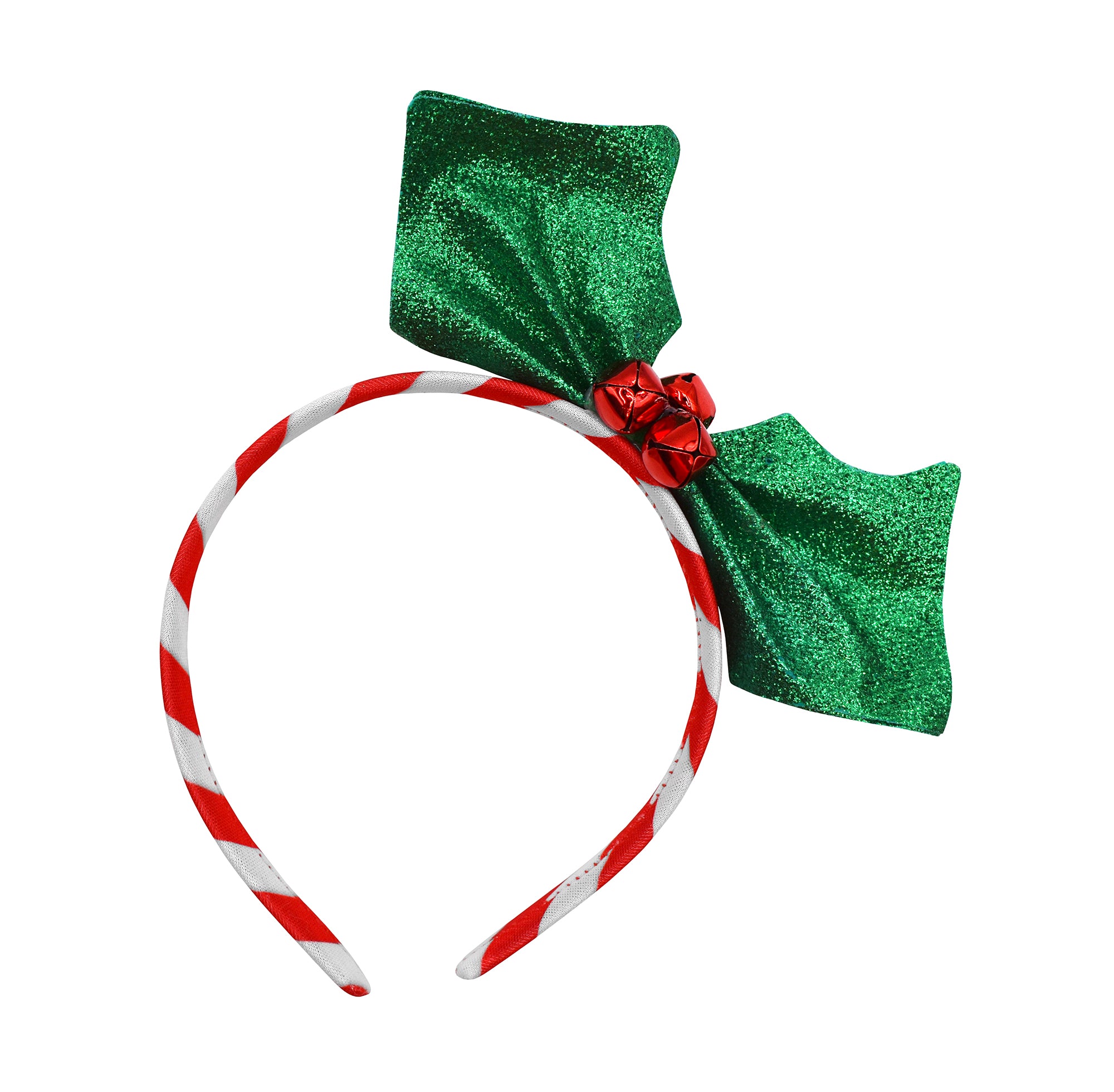 Christmas Holly Headband Candy Cane Stripe Glitter Holly Leaves & Red Jingle Bells Festive Holiday Teens Adults