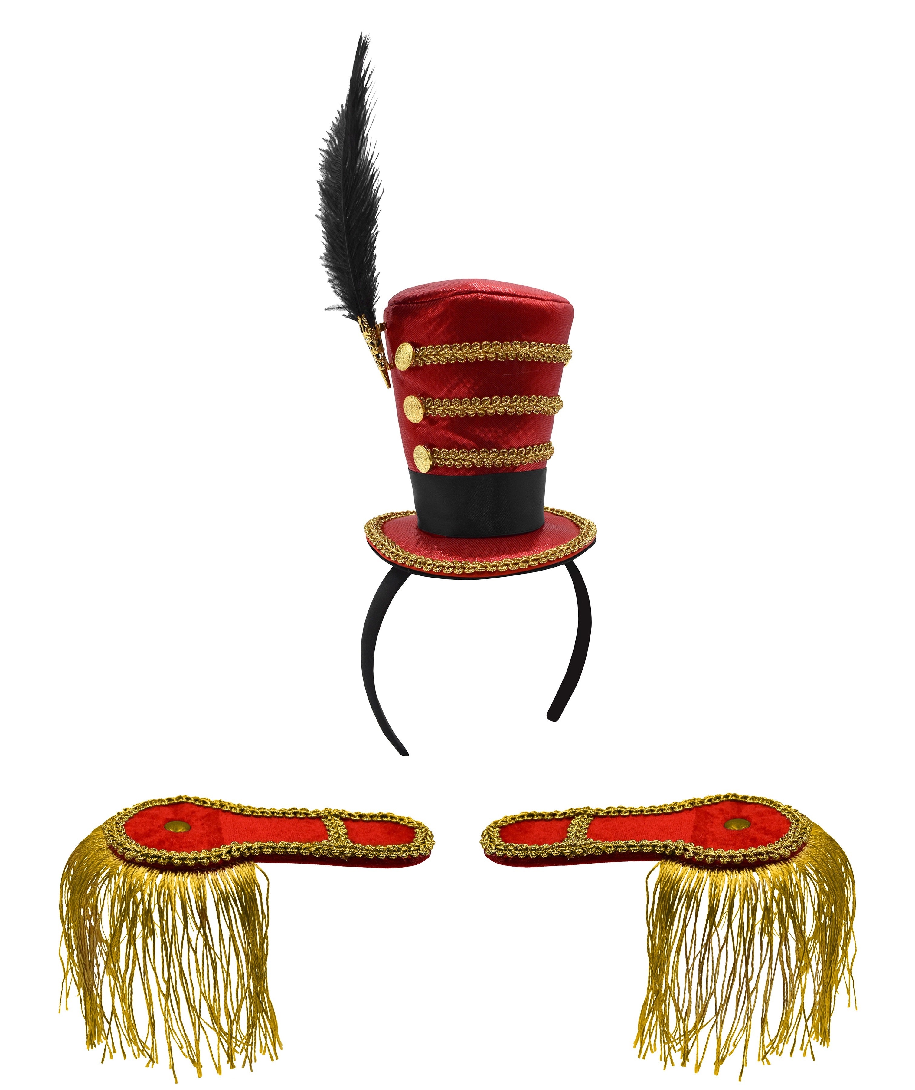 Mini Ringmaster Hat And Black Shoulder Epaulettes Gold Fringe Costume Accessory