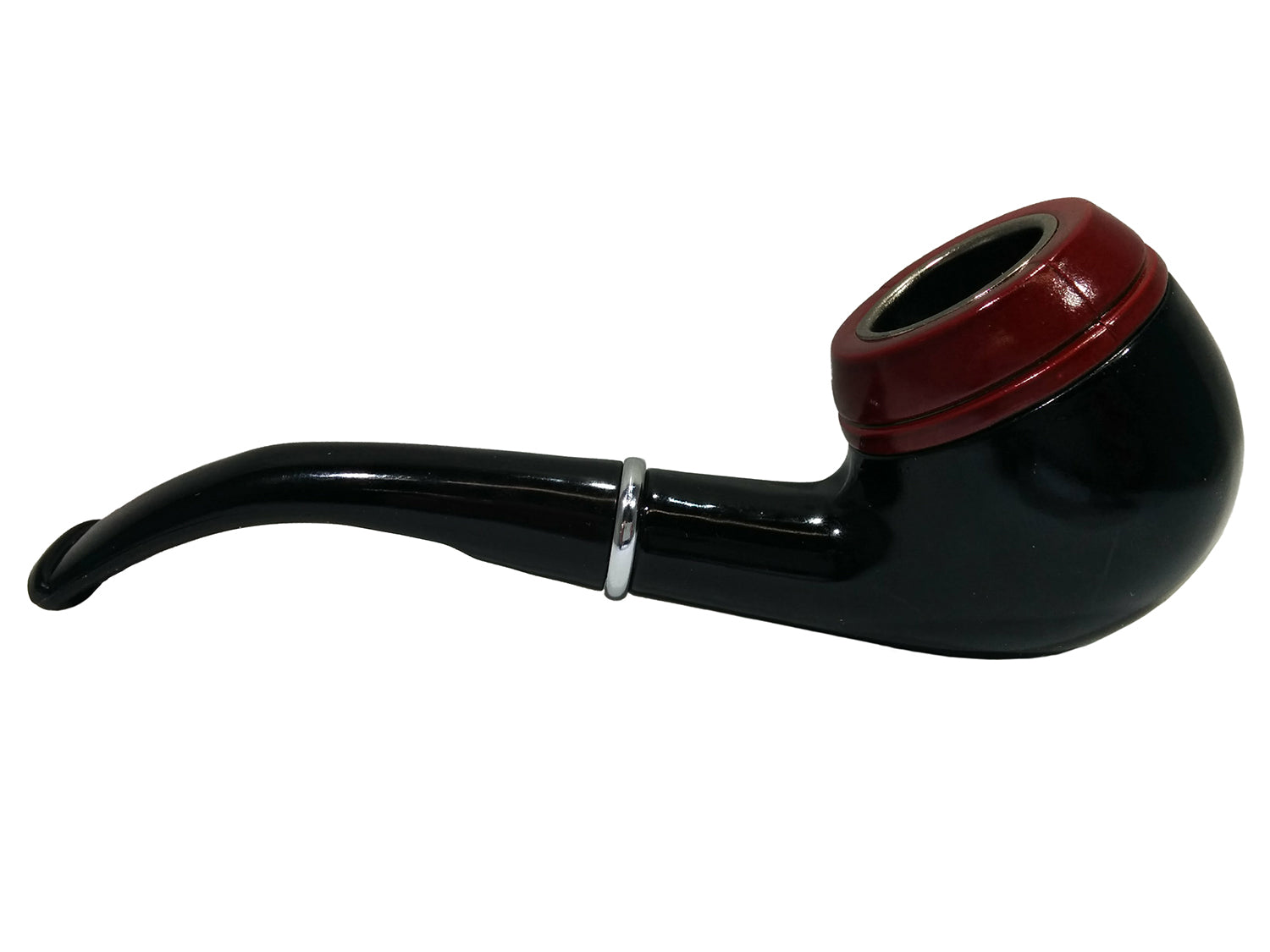-With its simple design and low price, this pipe is ideal for a quick smoke, costume accessory,trying new tobaccos, and for party favors. The pipe is a two piece design with a Bakelite stummel and plastic stem mouthpiece. The mouthpiece will separate from the stummel for cleaning, and adding or changing filters. The 5.5 inch pipe has a half bent shank and stem with removable metal filter. The long black plastic mouthpiece will not get hot due to the material of the stummel. This pipe is just the right pipe for beginners, fishermen and yacht captains, costume prop or accessory, or relaxing on the porch for an evening smoke. For Ages 14 and Older