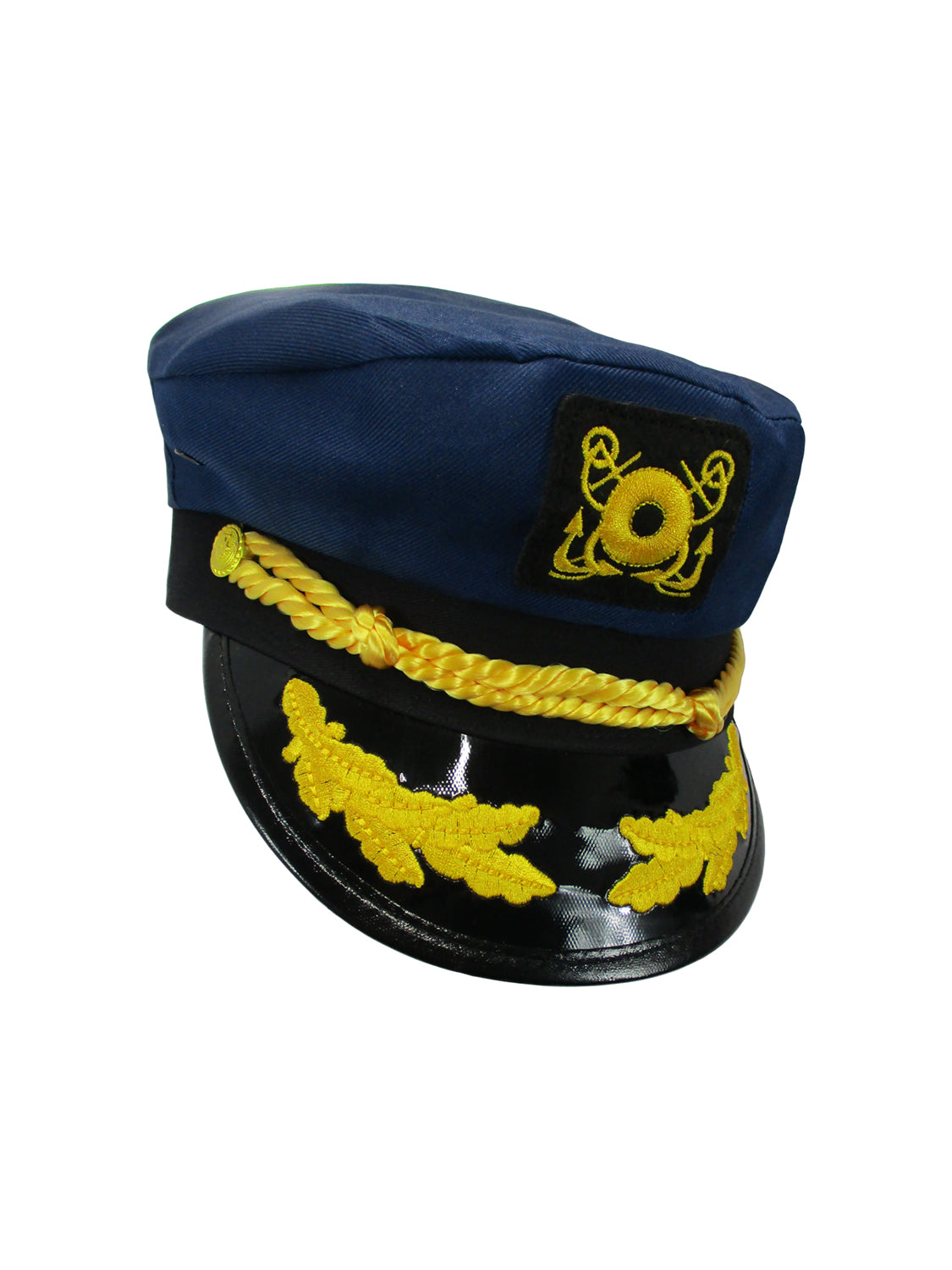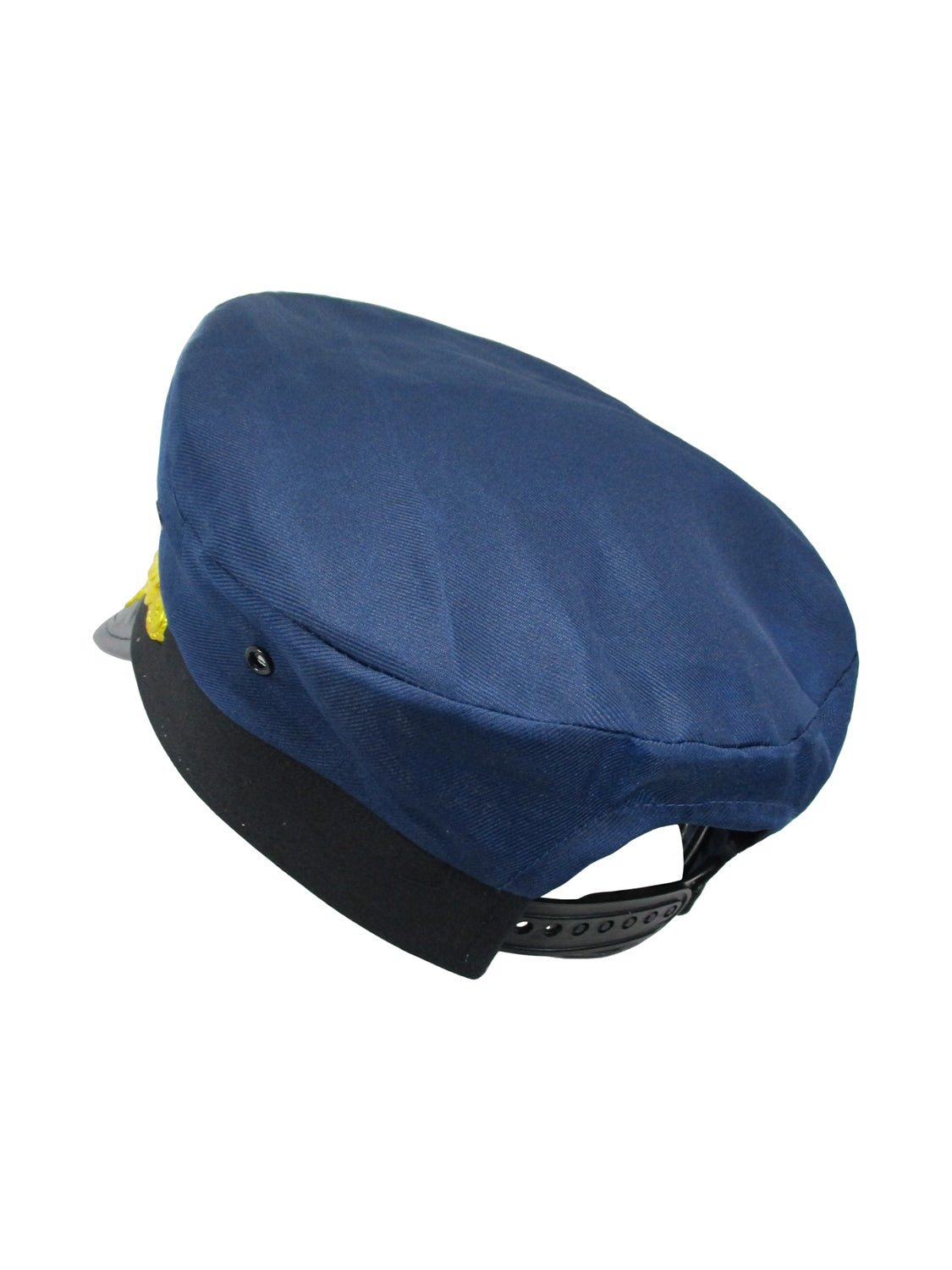 Deluxe Navy yacht cap includes scrambled eggs on the brim and gold embroidered insignia on the cap. Has adjustable strap on back. 100% Cotton. Put this cap on and become the 'Skipper' marooned on a desert island, and use it to your master the mates.