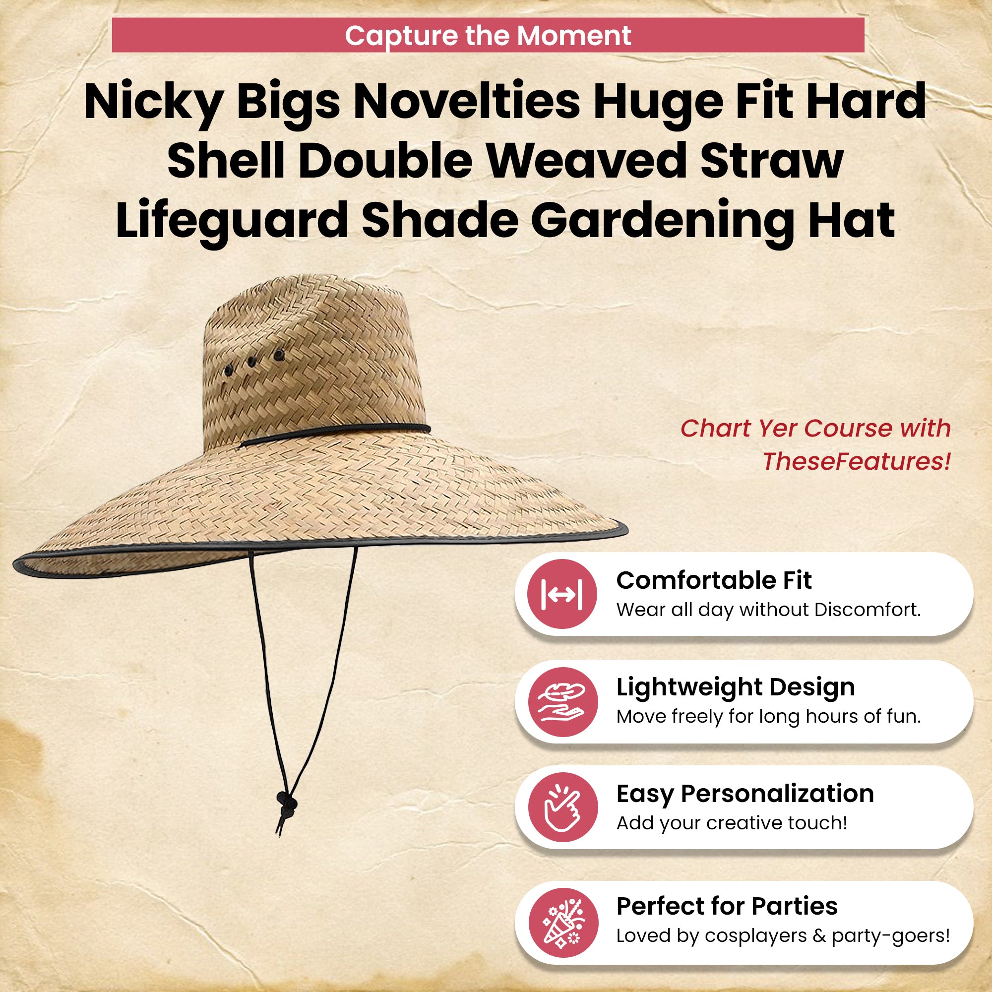 Nicky Bigs Novelties Handmade Huge Large Fit Hard Shell Double Weaved Straw Shade Gardening Hat Wide Brim Outdoor Sun Hats