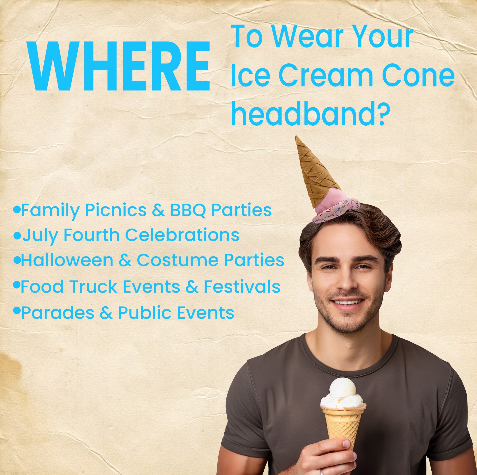 Perfect for food vendors, ice cream parlor staff, or soda jerks looking to boost visibility, its also a charming addition to any costume party, Halloween celebration, or summer festival. The elastic loops allow for minor position adjustments so you can angle the cone to your likingbecause style should be as flexible as your fun.