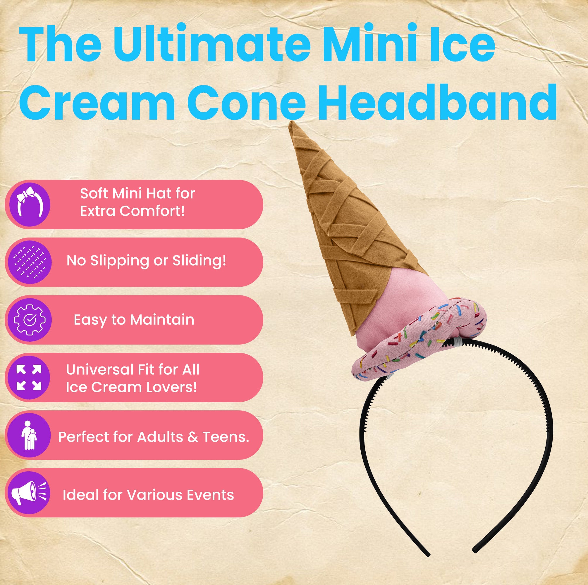 Unisex Mini Food Vendor Ice Cream Cone on Headband Parlor Costume Party Supplies