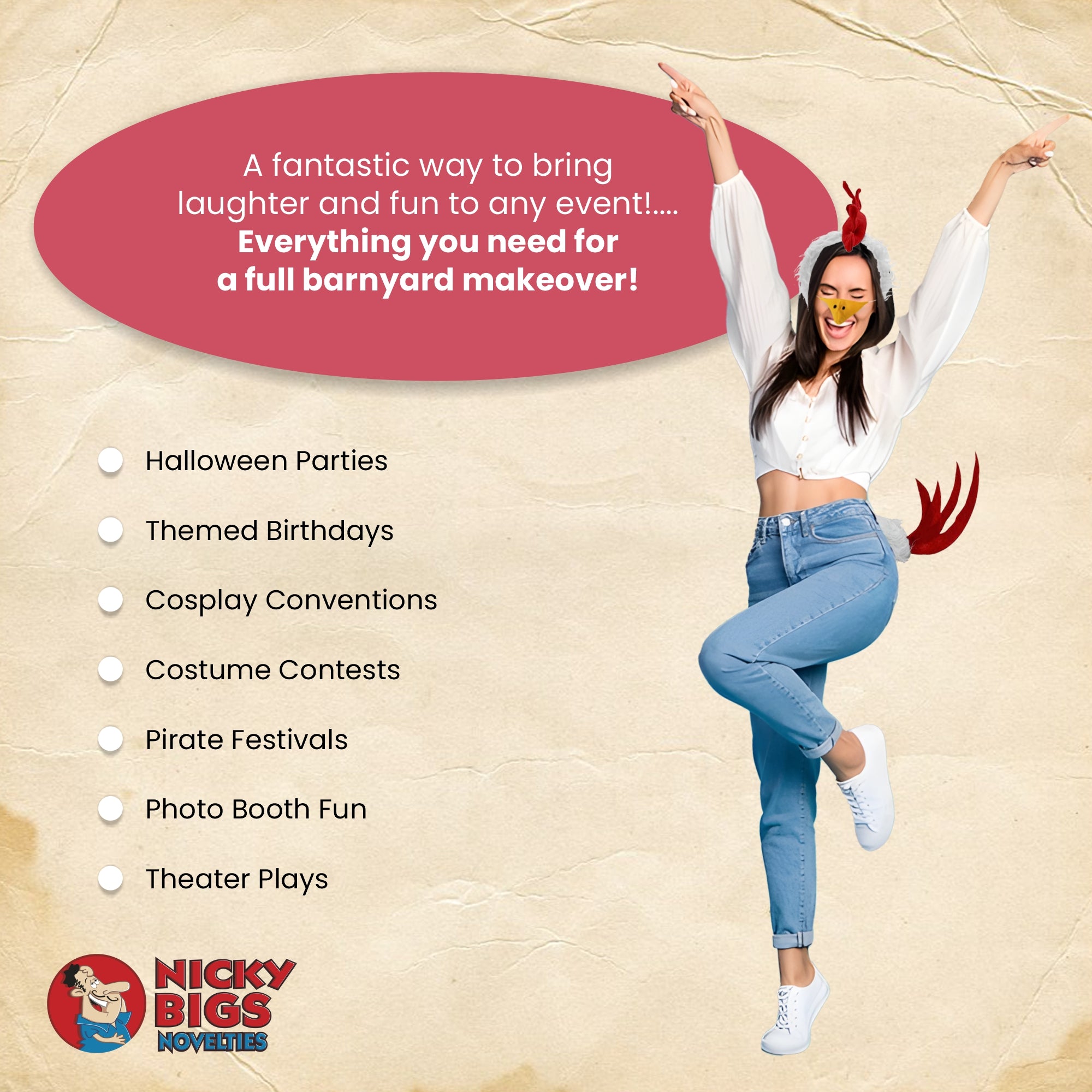- Fun and Whimsical: Perfect for adults looking to transform into a playful rooster or chicken character. Great for Pretend, Plays, Photo Booth Props and more! Perfect for Halloween, Cosplay, Theater and more!